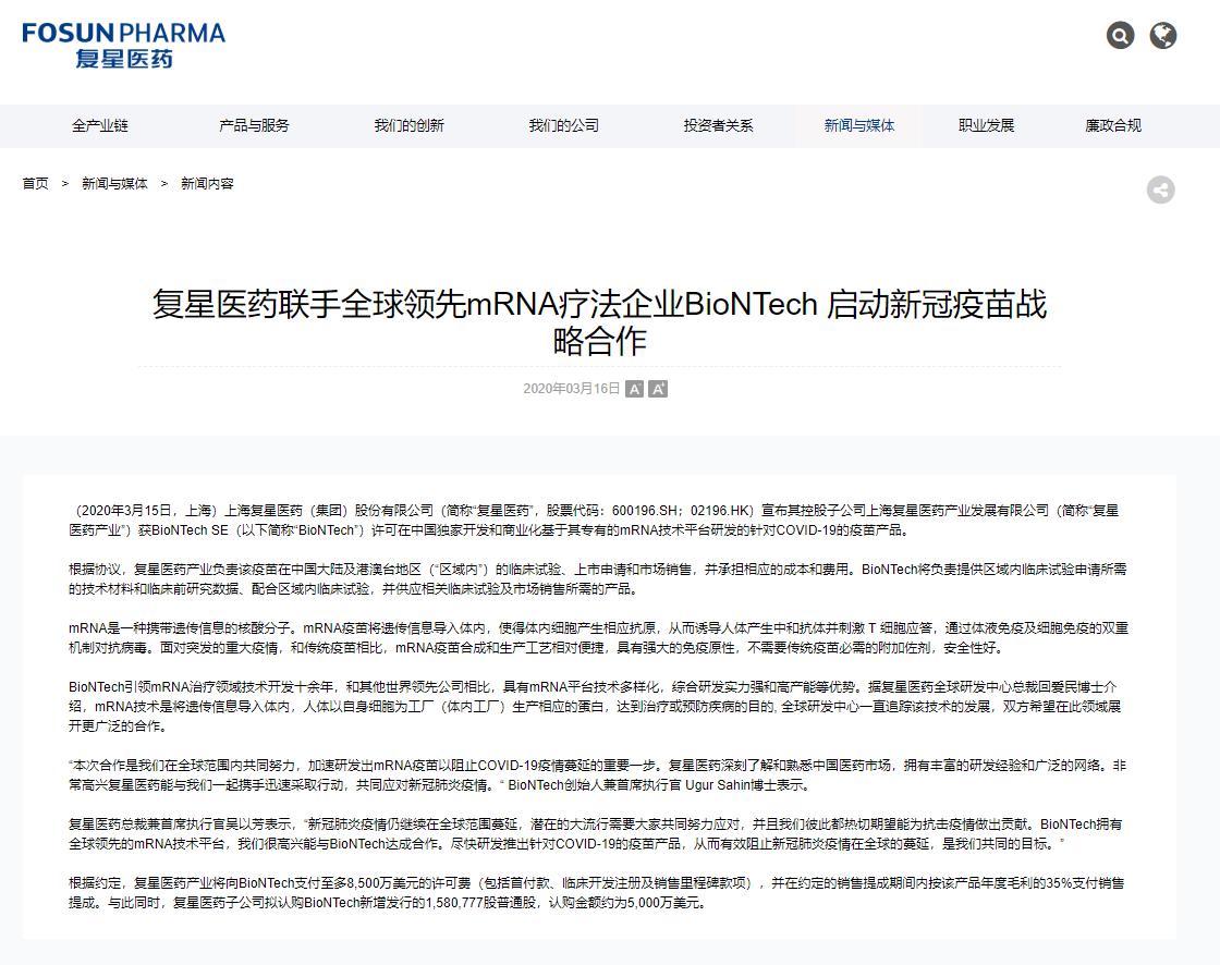 復星醫藥和Biontech合作研發的疫苗 - å±é·ç¶²èª é£ç©åè¡ç"å± - 本台rfi法語記者周六發自台北的消息還說,台灣目前僅有不到1%的民眾已經接種了疫苗。 當地上周確實收到了向莫特納(moderna)和阿斯利康 台灣總統府女發言人葉冠伶(kolas yotaka )表示,這產生了焦慮,被中國利用於為其政治日程服務。 復星醫藥明確表示願意提供幫助.. Q:復星/ biontech 疫苗用甚麼技術? a:信使核糖核酸 (mrna) 技術平台。 此技術之前從未在人類身上應用接種。 a:兩者基本一樣。 疫苗本身由 biontech 及美國輝瑞製藥共同研發。 輝瑞為疫苗研發出資、組織臨床測試,並向各國藥監部門申請許可。 The site owner hides the web page description. Biontech se 是一家成立於 2008 年的生物科技公司,為癌症和其他疾病開發個性化免疫療法。 該公司的個性化新抗原 bnt122 是一種實驗性 mrna 癌症疫苗,目前正在與 merck 的 keytruda 和 genentech 的 tecentriq 進行獨立的組合試驗,評估其對黑色素 biontech、pfizer 與復星醫藥的合作. 【新冠疫苗 fact check】復星醫藥同 biontech 合作研發嘅新冠疫苗要打幾多針,每針要隔幾耐先打? 1月27日:復星醫藥同 biontech 合作研發嘅新冠疫苗要打幾多針,每針要隔幾耐先打? 打之前使唔使做病毒測試先? 有邊啲人士唔適合接種?